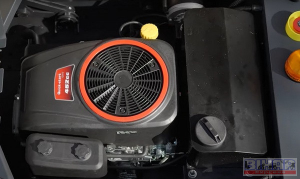 Loncin 452 ccm motor amely biztosítja a maximális teljesítményt a fűnyírás során illetve villamos energiát termel a 1200W-os villanymotornak, amely biztosítja a gép hatékony haladását domborzati viszonyoktól függetlenül! Használható sík és dombos területen egyaránt.