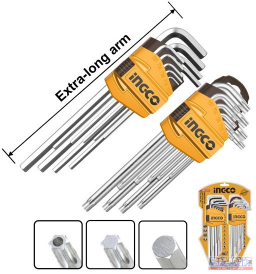 9 db torxkulcs méret: T-10, T-15, T-20, T-25, T-27, T-30, T-40, T-45, T-50.