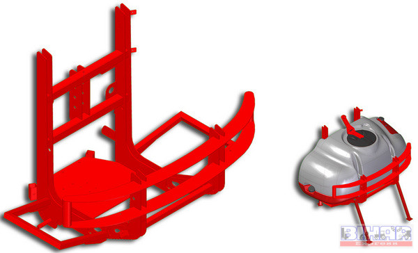 Az alváz 3 pont felfüggesztéssel kapcsolódik az erőgéphez, a fel és leszerelése mellső hidraulikával szerelt traktoros esetén gyorsan megoldható. A 600 és 800 literes változat esetén felszerelhető tartókerettel is, amennyiben nincs kiépítve a hidraulikus emelőszerkezet.