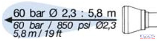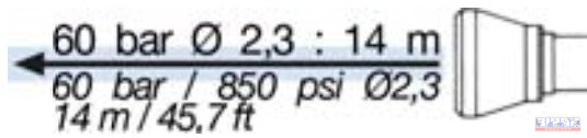 Fúvóka mérete: Ø 2,3 mm (M15x1 mm), megrendelésre csere fúvókák: Ø 1÷4,5 mm