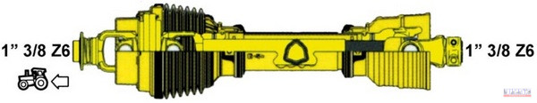 Traktor oldali csatlakozás: 1.38" 6 bordás homokinetikus dupla-csukló biztonsági gyorscsatlakozóval