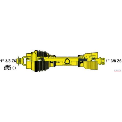 Traktor oldali csatlakozás: 1.38" 6 bordás homokinetikus dupla-csukló biztonsági gyorscsatlakozóval