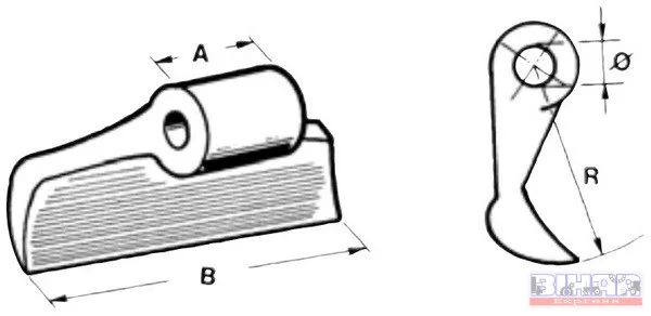 Agricom, Berti, Breviglieri, Cosmo, Faustini, Kverneland-Maletti, Maschio, Meaat, Vigolo, Vogerl&Noot és más aprítónál alkalmazott kalapács.