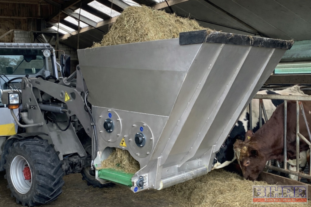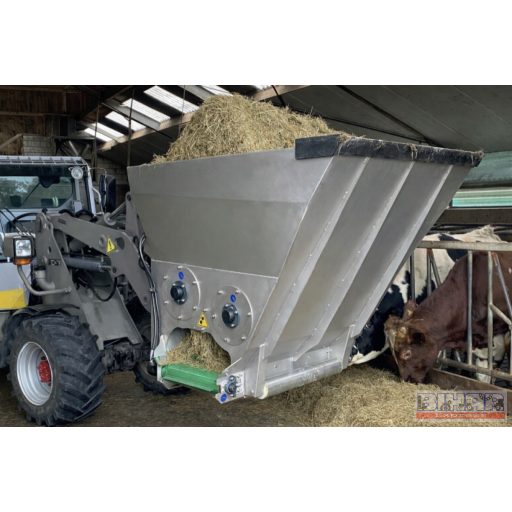 A kiosztó kanállal a takarmánysilóból és a bálákból is feldolgozhatod a szálas takarmányt.