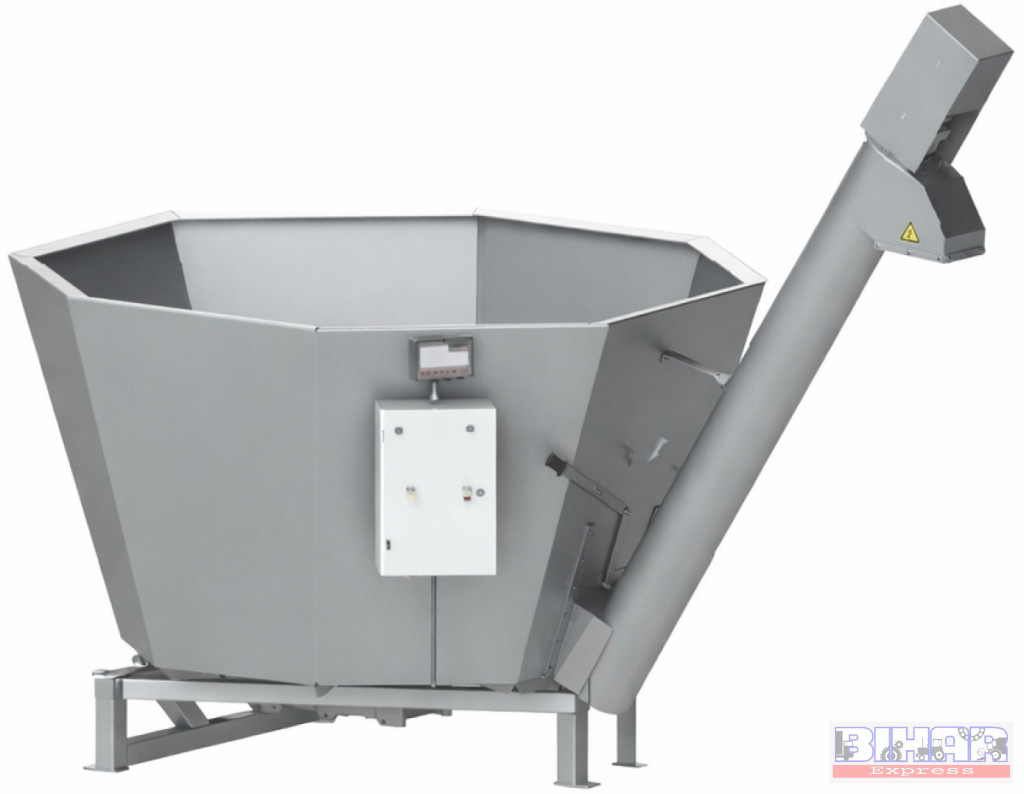 Az álló keverőegység precíz mérőrendszerrel és optimalizált csigákkal rendelkezik, amelyek lehetővé teszik a kívánt mennyiségű takarmány pontos keverését és kiadagolását.