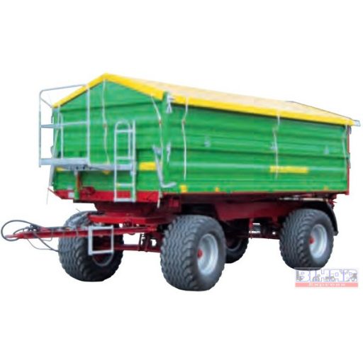 Két-tengelyes, három oldalra billentő pótkocsi.